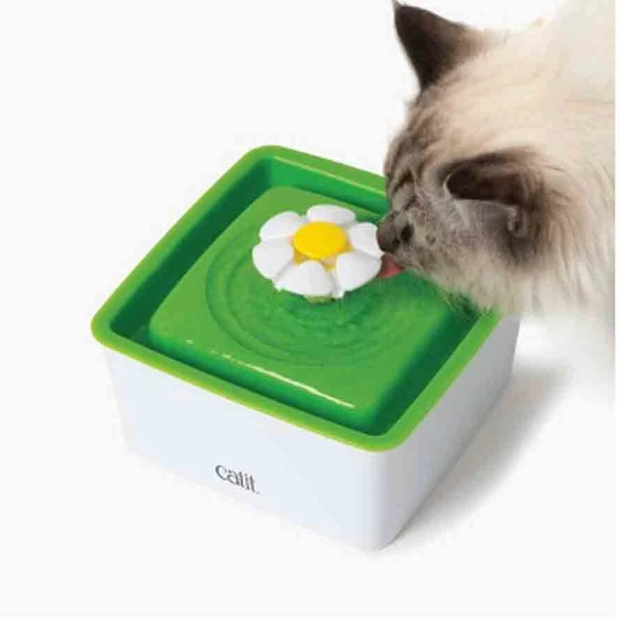 Lorsque les chats ont soif, ils cherchent une source d’eau fraîche et courante. Le mini abreuvoir Catit avec fleur offre donc trois réglages différents : un débit léger, une cascade de bulles et un ruissellement apaisant.