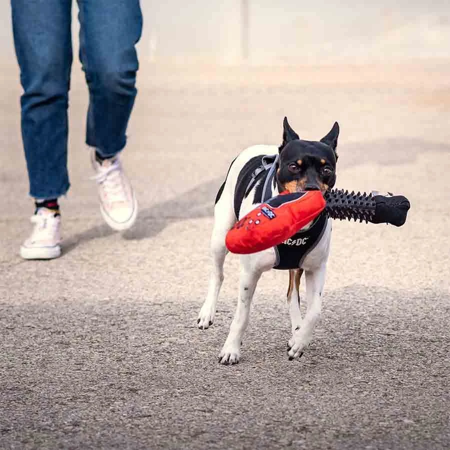 Ce jouet de For fan Pets a un design très original de guitare avec le logo du très célèbre groupe ACDC.