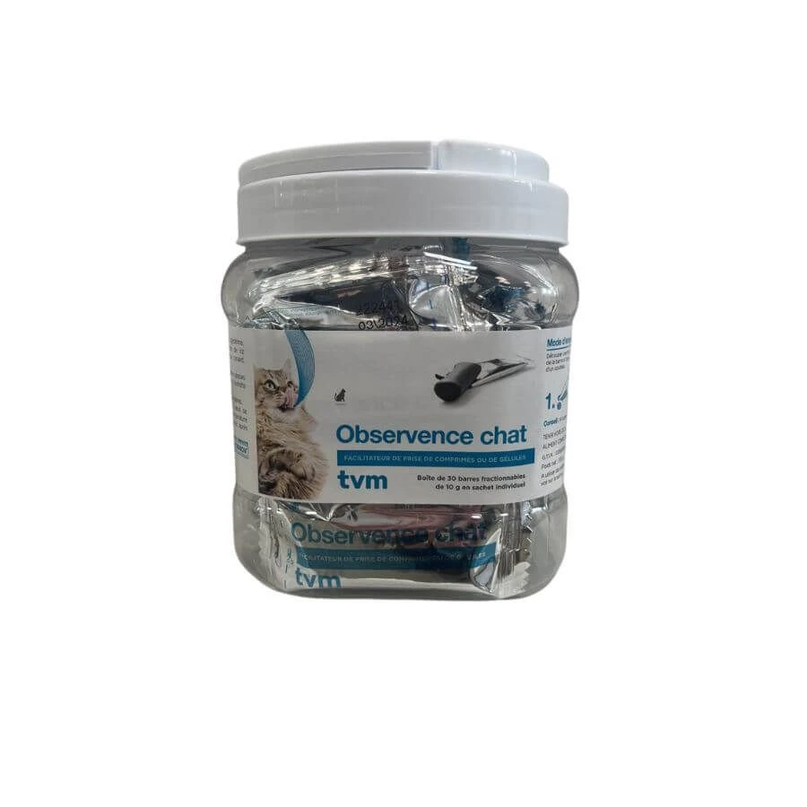 OBSERVENCE est un aliment complémentaire pour votre chat qui permet d’enrober et de dissimuler comprimés ou gélules pour en faciliter la prise. L’odeur et la saveur correspondent parfaitement au goût du félin et la texture empêche l’animal de dissocier le comprimé ou la gélule de la boulette formée.