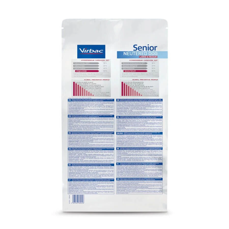 L’aliment Veterinary HPM Senior Neutered Dog Large & Medium est destinĂ© au chien stĂ©rilisĂ© de race moyenne de plus de 8 ans, et de grande race de plus de 6 ans.